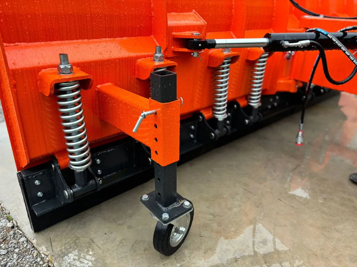 Reglajul unghiului de lucru este realizat hidraulic cu 2 cilindri, oferind flexibilitate si control optim in orice conditii. Roti de sprijin contribuie la stabilitate si la mentinerea unei pozitii corecte in timpul operarii, asigurand rezultate uniforme. Inaltimea lamei de 103 cm permite indepartarea eficienta a zapezii chiar si in conditii dificile.