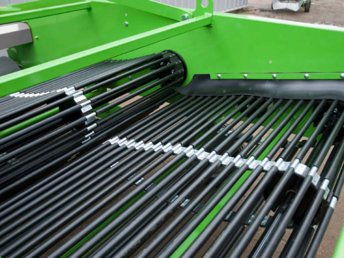 Pentru o functionare optima, masina dispune de doua discuri de taiere reglabile, care asigura o taiere curata si reduc pierderile. In plus, benzile cauciucate contribuie la manipularea delicata a culturii, protejand radacinile si mentinand calitatea produsului recoltat. Aceste utilaje agricole sunt prevazute si cu roti de sprijin in partea din spate, permitand reglarea usoara a adancimii de lucru, in functie de tipul solului si cultura.