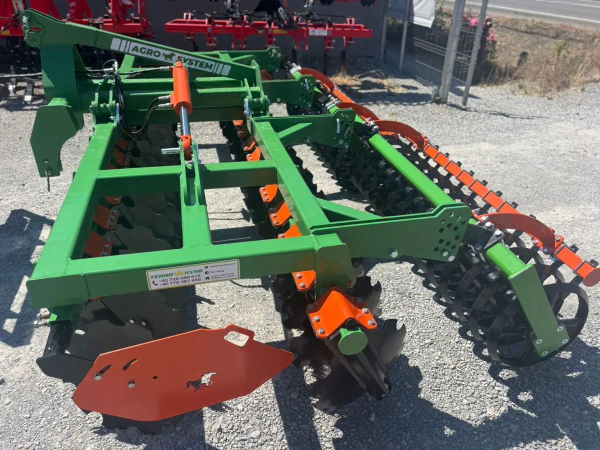 Terradisc hummer Agrosystem BTH rabatabil purtat este o solutie moderna si eficienta pentru lucrarile de prelucrare a solului, proiectata pentru performanta si durabilitate in conditii variate de lucru. Aceste utilaje agricole sunt echipate cu sistem de tractare robust si cadru rabatabil actionat de 4 cilindri hidraulici, oferind stabilitate si usurinta in transport.