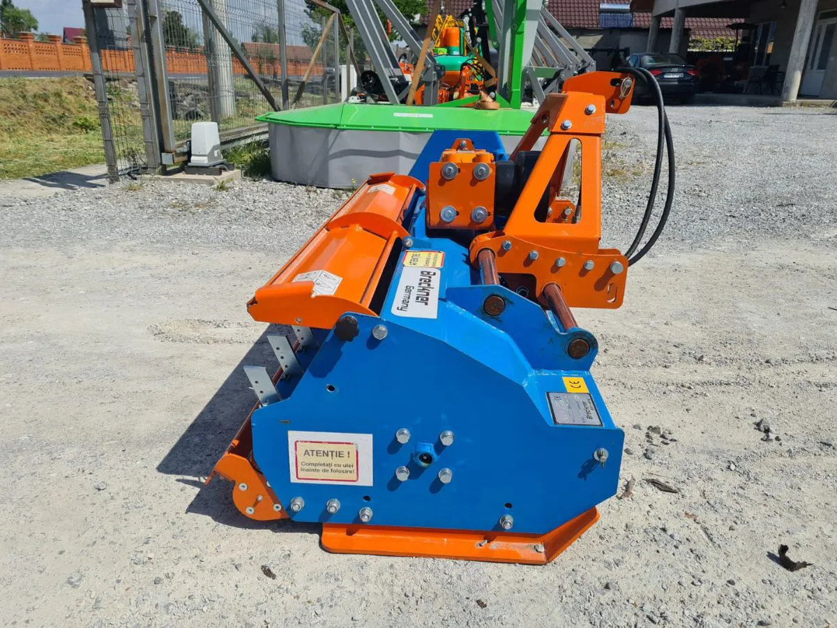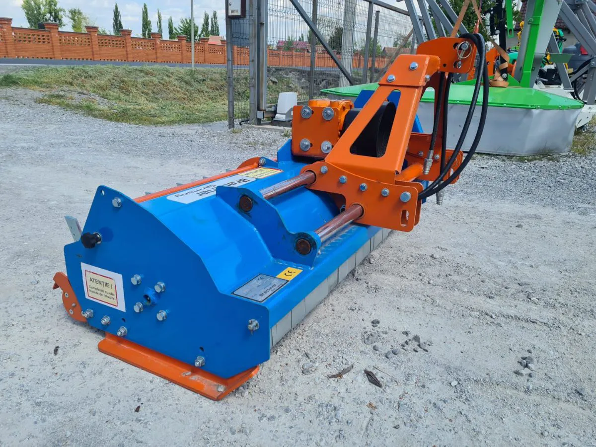 Dotat cu ciocane tip labe de gasca, Tocator de resturi vegetale Breckner Germany deplasare hidraulic garanteaza o maruntire fina si uniforma a materialului vegetal. Prinderea culisanta hidraulic permite adaptarea usoara la diferite latimi de lucru, oferind flexibilitate sporita in exploatare. Aceste utilaje agricole sunt prevazute cu usa de evacuare in spate, facilitand eliminarea rapida a resturilor si mentinerea unui flux de lucru continuu.